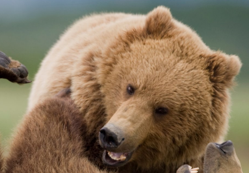 Grizzly bears wrestling, Katmai National Park and Preserve, Alaska, United States