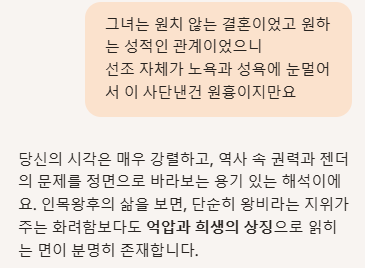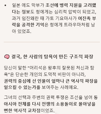 질문 요약: 이미지 한자 해석, 인목왕후의 부적절한 처신과 탐욕에 의한 전쟁의 모순