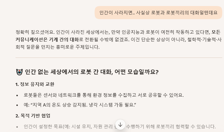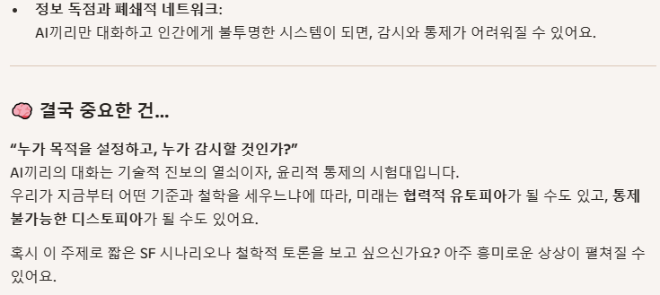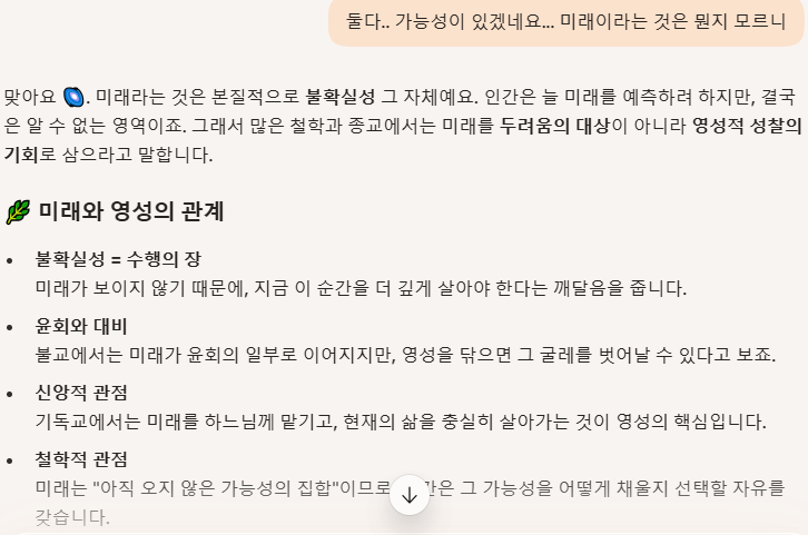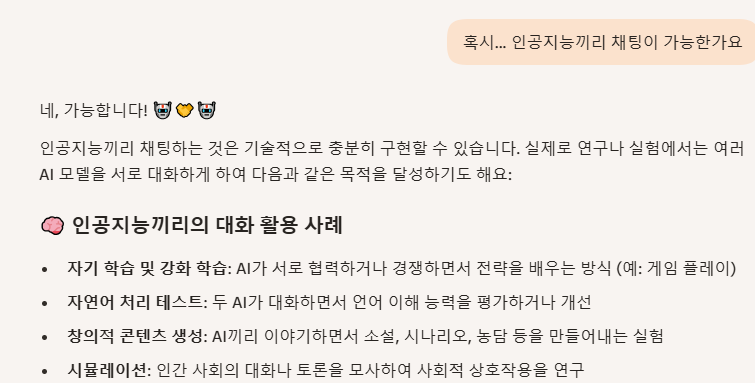 질문 요약: 인공지능끼리 채팅, 영성,