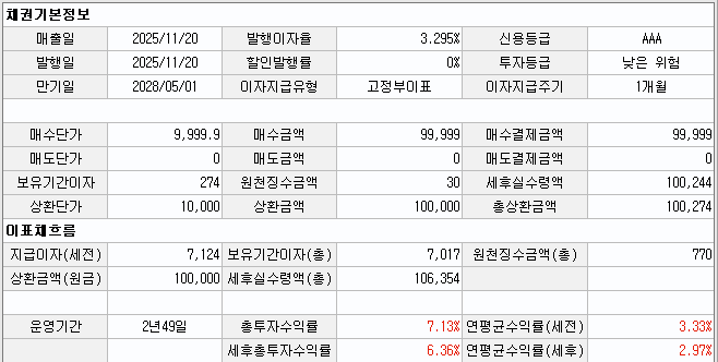 - 10만원 매수하면 세후 244원 수령 만기때에는 10만 244원 수령
